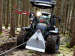 Die gleiche Technik der großen Rückeanhänger, aber angepasst an die kleineren Traktoren bietet der SR.950. Starke Technik zum Einstiegspreis.
