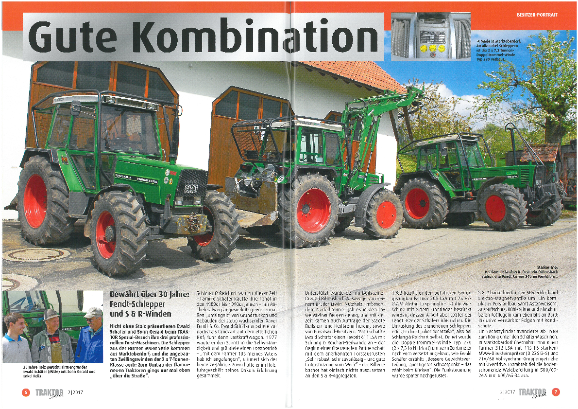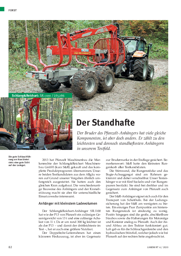 Précédent 123 Suivant 17/03/2020 Landwirt - Der StandhafteDer Bruder des Pfanzelt-Anhängers hat viele gleiche Komponenten, ist aber doch anders. Er zählt zu den leichtesten und dennoch standhaftesten… Plus d'infos 200302_fortschrittlicher-landwirt_krananhänger_steckbrief-schlang-reichart.pdf (560 Ko) 16/10/2019 Der Waldbauer - TraditionsmarkeSchlang & Reichart, seit knapp 70 Jahren bekannt als Hersteller professioneller Forsttechnik aus dem Allgäu, präsentiert auf der Austrofoma 2019 neben… Plus d'infos Traditionsmarke (1 Mo) 26/09/2019 Mecanisation Forestiere - Schlang & Reichart renforce sa structure françaiseConstructeur allemand historique, Schlang & Reichart a été rachetée en 2013 par Pfanzelt, I'un de ses principaux concurrents nationaux. À Seltz, dans… Plus d'infos 190926_mecanisatonforestiere_hausausstellung.pdf (3 Mo) 08/01/2018 Kommunale Fahrzeuge 2018 - Unimog- KrananhängerSpeziell für den Unimog hat die Firma Schlang & Reichart einen Krananhänger konstruiert. Das neue Baukonzept eröffnet neuartige Möglichkeiten und… Plus d'infos 180108_kommunalefahrzeuge_unimoganhaenger.pdf (375 Ko) 05/12/2017 Feuerwehrmagazine - Florian weiter im AufwindDie Fachmesse für Feuerwehr, Zivil- und Katastrophenschutz fand vom 5. bis 7. Oktober 2017 erneut in Dresden statt. Im Verbund mit dem… Plus d'infos 171205_feuerwehr_raupe.pdf (3 Mo) 05/07/2017 HOLZmachen - Alpin-Serie von Schlang & ReichartMehr Aussteller, größere Technik, neue Wege - mit diesem Messekonzept lockte die 18. Auflage der Forst live weit über 31.000 Besucher nach Offenburg.… Plus d'infos 170705_holzmachen_alpin_1.pdf (2 Mo) 06/06/2017 Forstmaschinenprofi - Eindrücke von der Unimog-Tour 2017Mercedes-Benz Unimog zeigt in einer fulminanten Roadshow - der zweiten nach 2014 - wie man den Alleskönner auf vier Rädern für vielseitige Aufgaben… Plus d'infos 170606_fmp_unimogtour.pdf (5 Mo) 08/05/2017 S+R: Direktanbau als Alternative zu Dreipunkt- und FestanbauMehr Aussteller, größere Technik, neue Wege - mit diesem Messekonzept lockte die 18. Auflage der Forst live weit über 31.000 Besucher nach Offenburg.… Plus d'infos 170508_fmp_direktanbau_forstlive.jpg (833 Ko) 22/03/2017 Gute KombinationBewährt über 30 Jahre: Fendt-Schlepper und S & R-Winden Plus d'infos 170322_fendtunds_rwinde_traktor_geraldsandrieser.pdf (10 Mo) 19/10/2016 MehrgenerationenkranReaktiviert: S&R-Autokran auf MAN 9.156 HKA Plus d'infos 161019_historischerkraftverkehr_autokran_hoerich.pdf (7 Mo) Précédent 123 Suivant