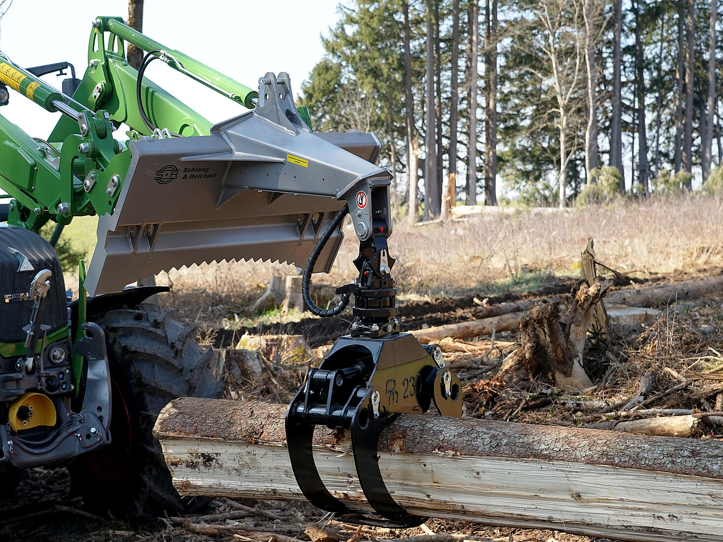 Nos Autres Equipements Afin de pouvoir vous épauler au mieux dans vos activités forestières Schlang & Reichart vous propose des lames avant, des chargeurs frontaux ainsi que des consoles arrière type Jake et des postes inversès pour diverses marques de tracteurs.Lame avantConsole arrière