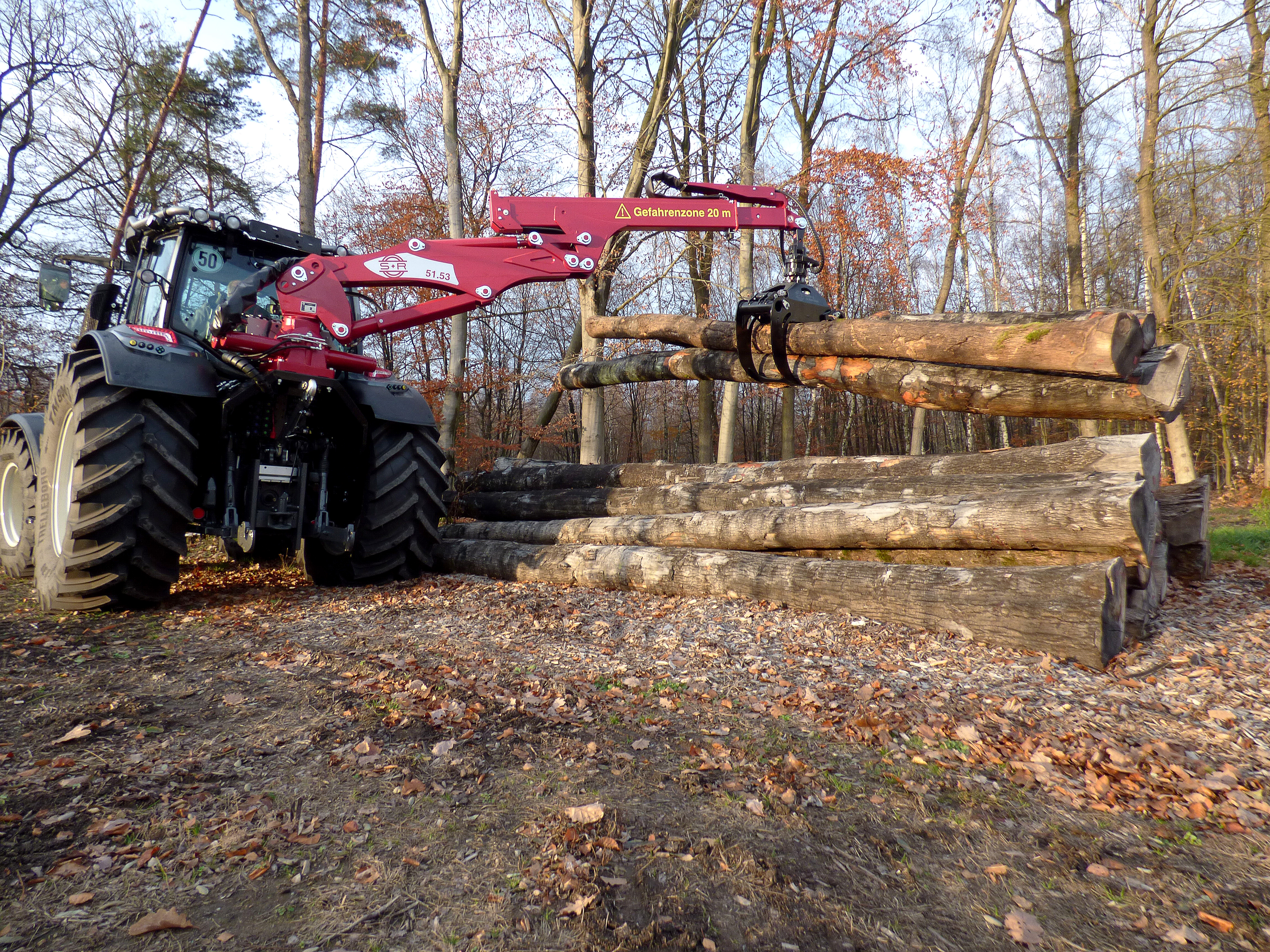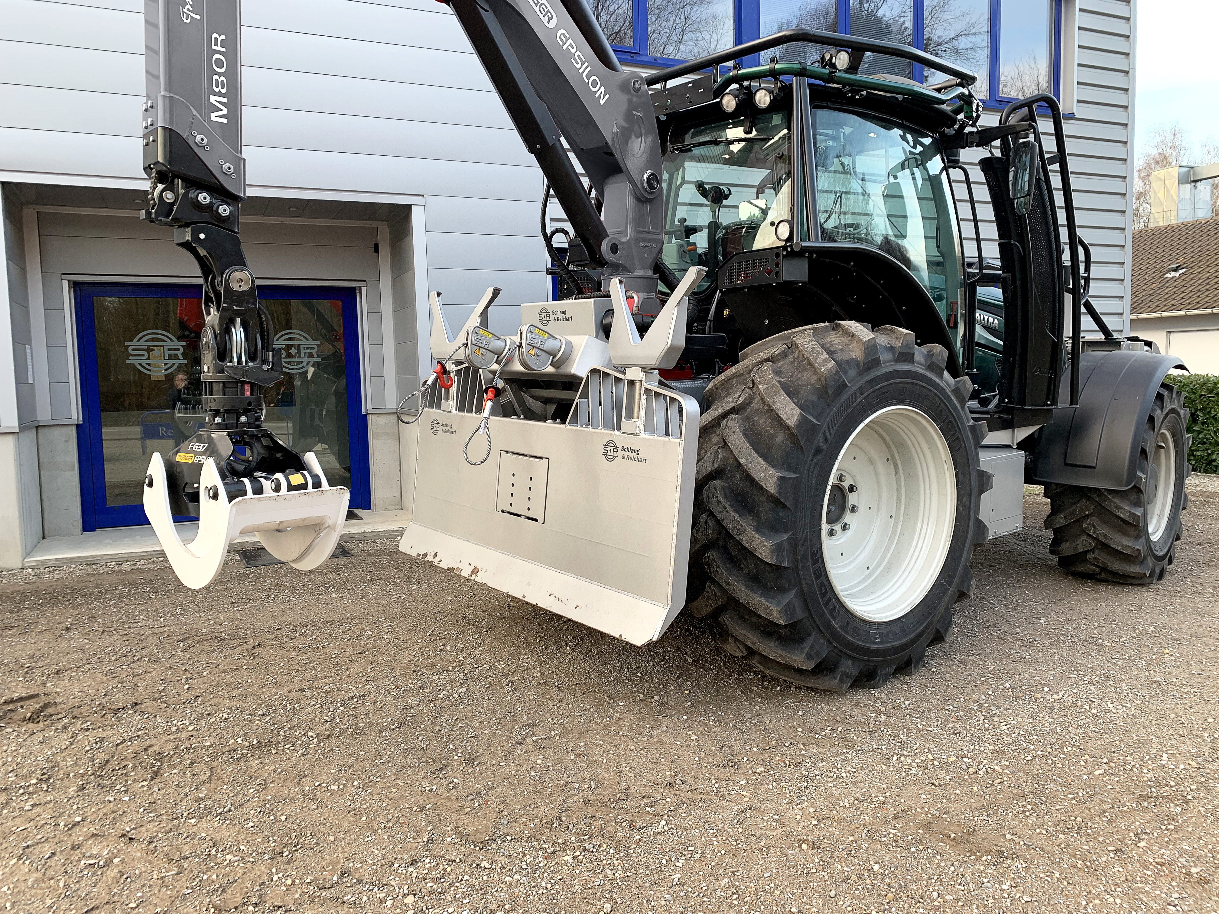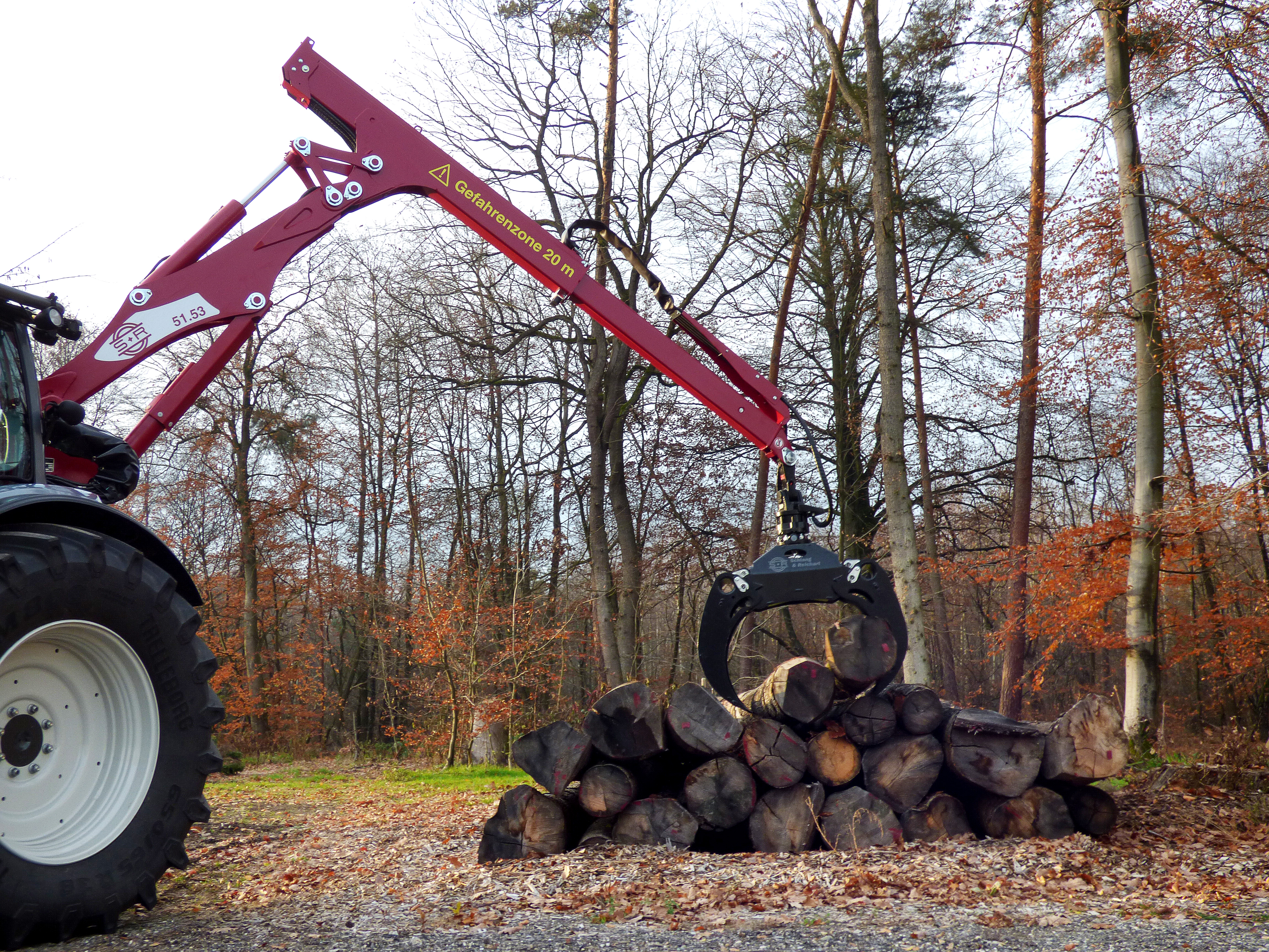 La console permet une utilisation polyvalente du tracteur, la grue qui est montèe dessus peut alros être combinée avec d'autres équipements à attelage à 3 points ou avec une remorque. De plus elle permet une pose et dépose rapide de la grue.