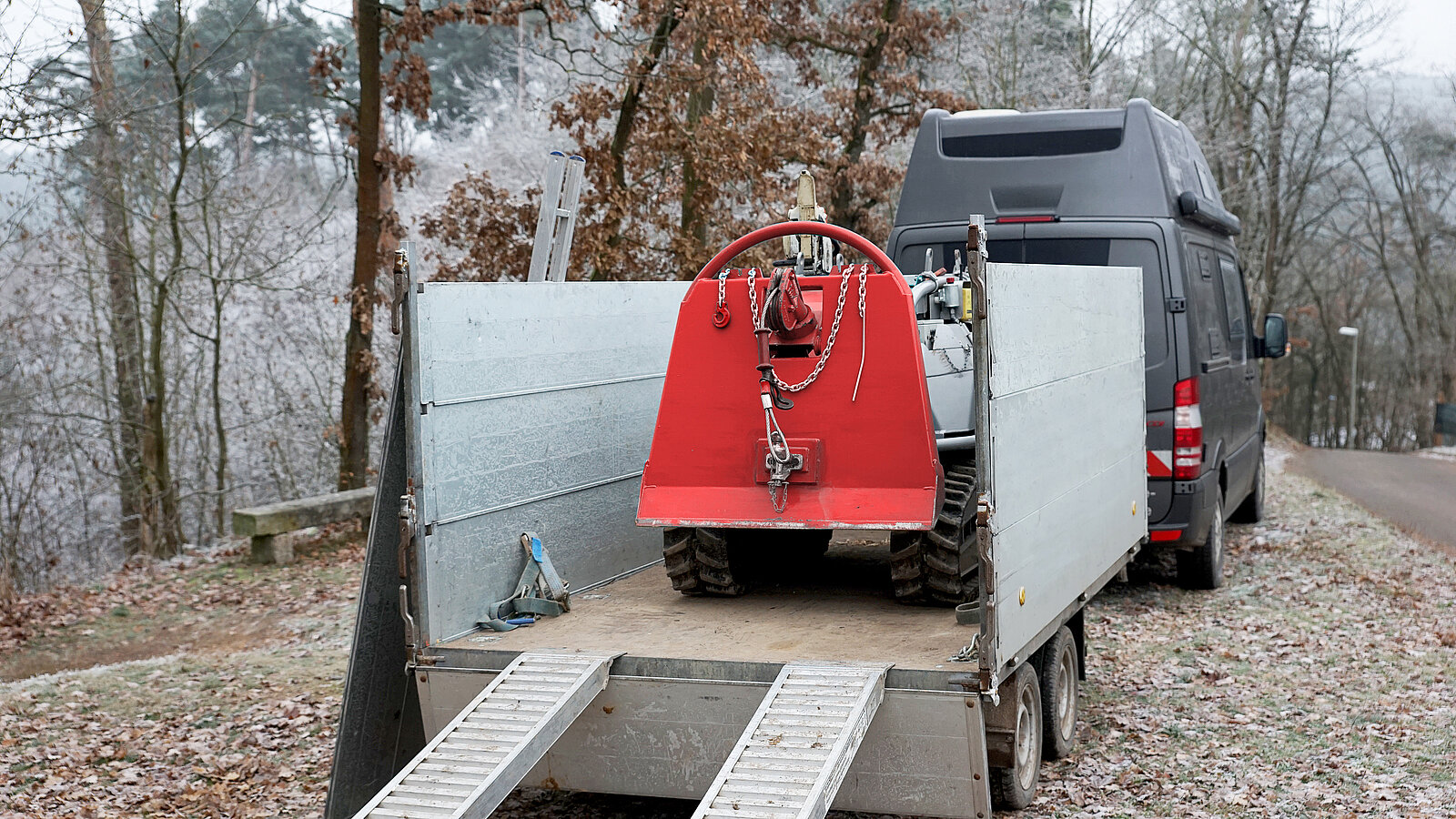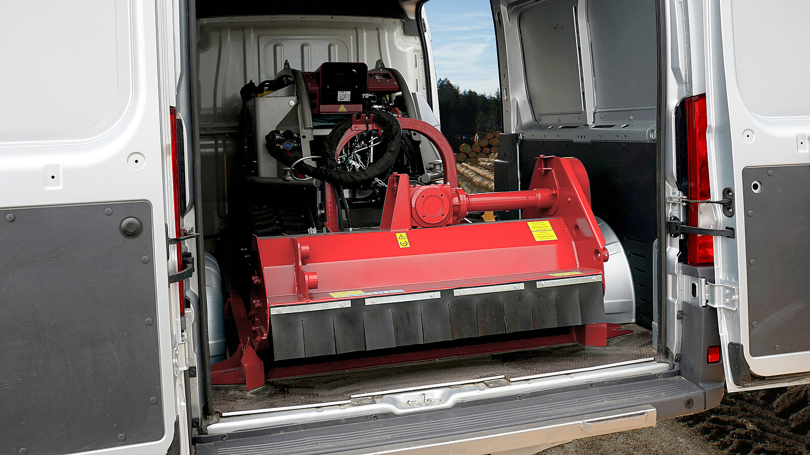 Das leichte Eigengewicht und die kompakten Abmessungen ermöglichen einen problemlosen Transport mit einem GW-T oder Anhänger. Optional können auch andere Anbaugeräte montiert werden.