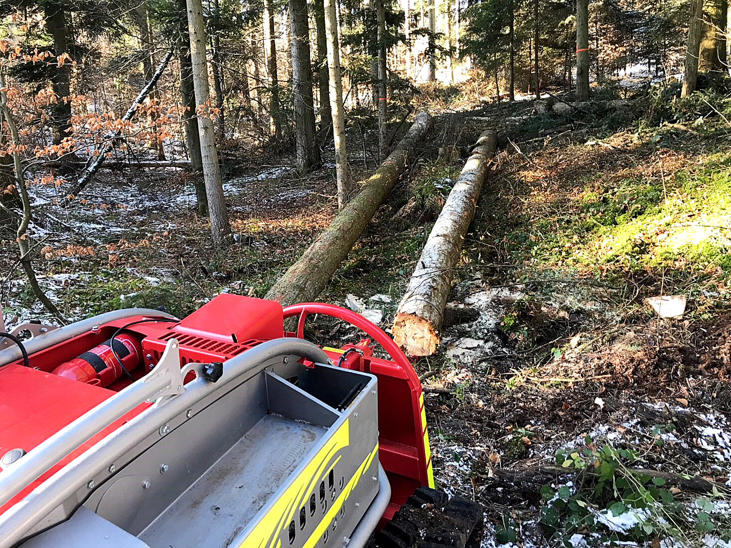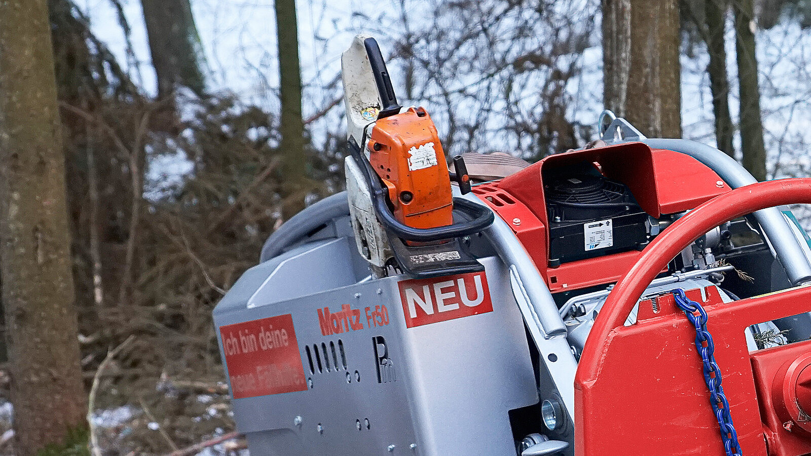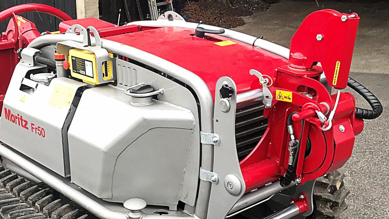 Passen Sie sich nach Bedarf die Fahrwerksbreite der Bergeraupe Moritz Fr50 an. Für den Transport oder auch für das Gelände kann die Breite des Moritz Fr50 hydraulisch um 400mm verbreitert werden. Die Bergeraupe kann somit sicher auch im Hang eingesetzt werden.