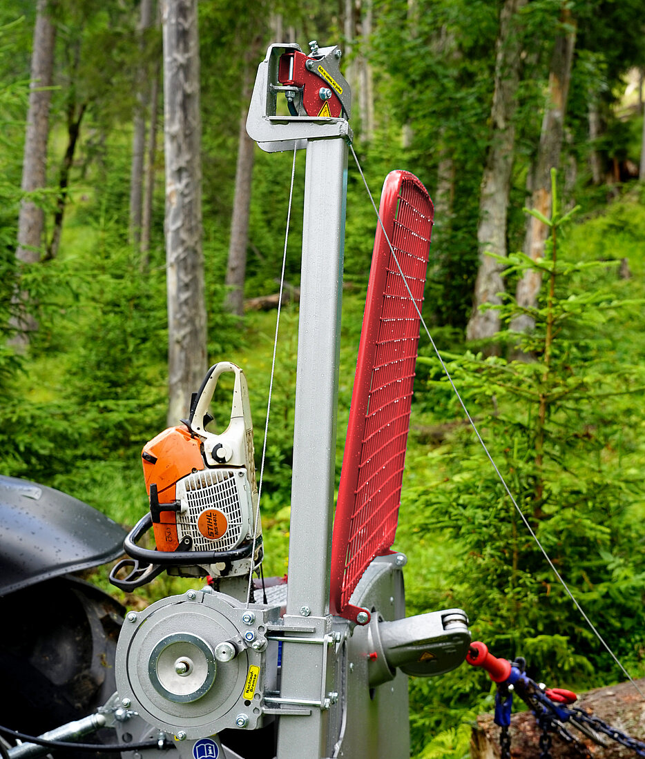 Die neue Hilfsseilwinde für Profi Getriebeseilwinden erleichtert das Seilen in anspruchsvollem Gelände. Das Verfahren ist dabei einfach und effektiv zugleich. Die Steuerung erfolgt ergonomisch über Funk. |