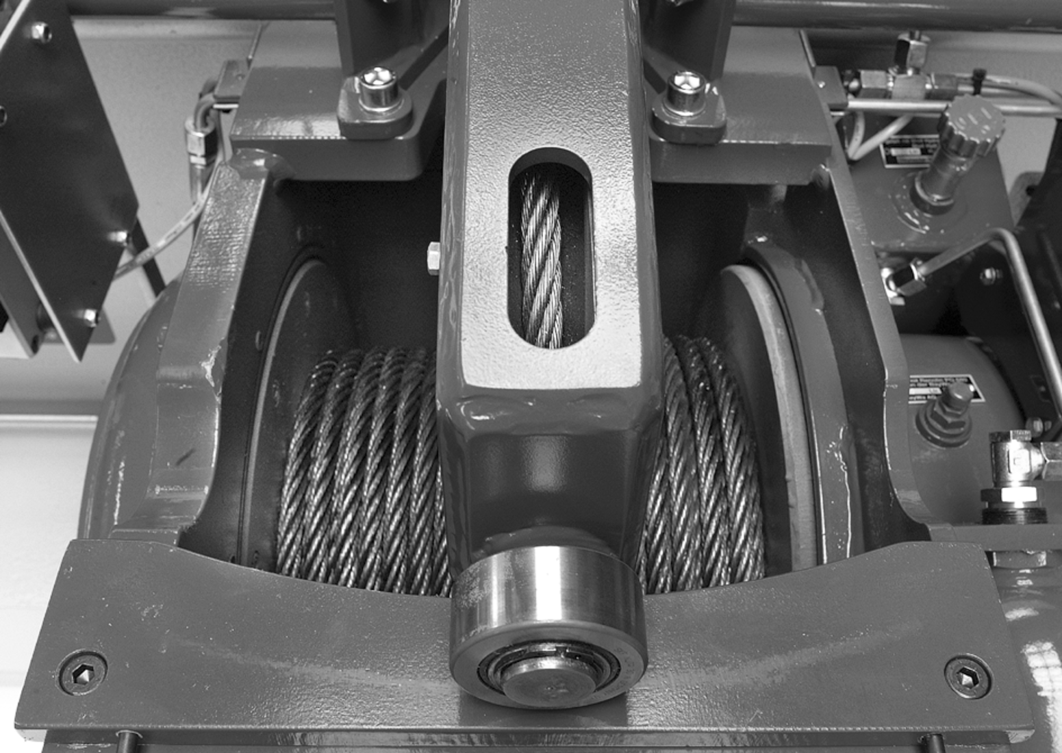 Der Seilausstoß, der über die hydraulische Eigenversorgung der Seilwinde gespeist wird, erhöht den Bedienkomfort und verbessert die Seilwickelqualität auf der Seiltrommel. Nach der Aktivierung wird das Seil durch zwei drehmomentstarke Hydraulikmotoren ausgestoßen. Diese sichern einen optimalen Seilausstoß auch bei Seilverschmutzungen oder -schäden. |